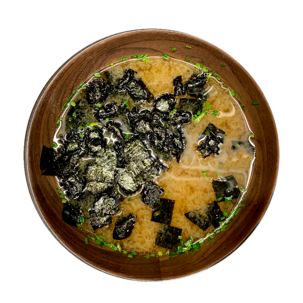 Zuppa di miso, alga nori, tofu e erba cipollina