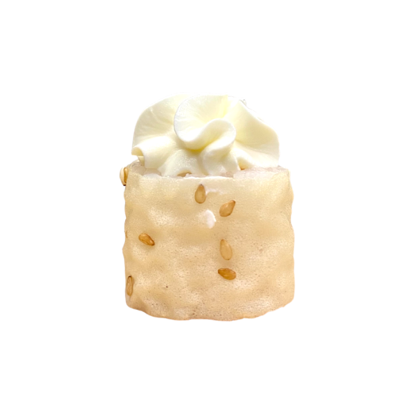 Riso ripieno di salmone affumicato avvolto da foglio di soia bianco con sesamo, sopra punta di philadelphia/ 6pz