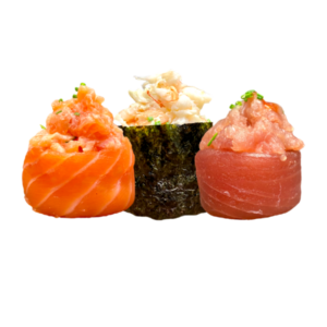 Sake, Maguro, Ebi (salmone, tonno pinne gialle, gambero cotto)